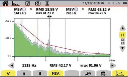 In the harmonic analysis function, there is also a mode for monitoring carrier currents, and after defining their frequency, the command signals will then be measured.